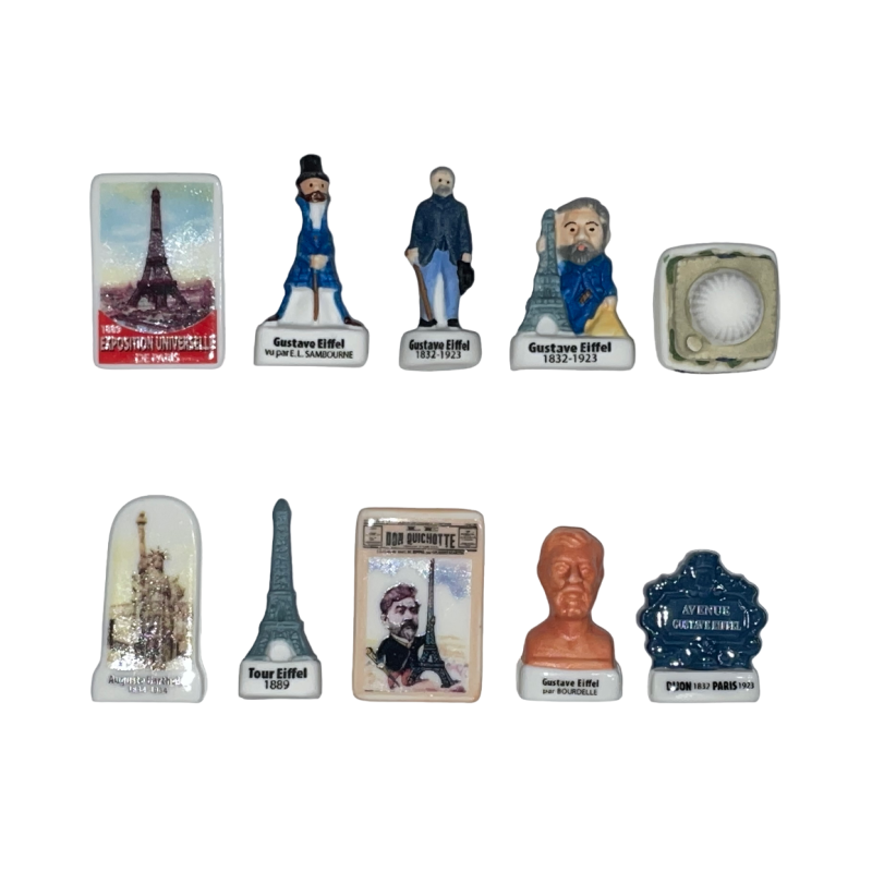 Série complète de 10 fèves Gustave Eiffel un génie de fer 2023