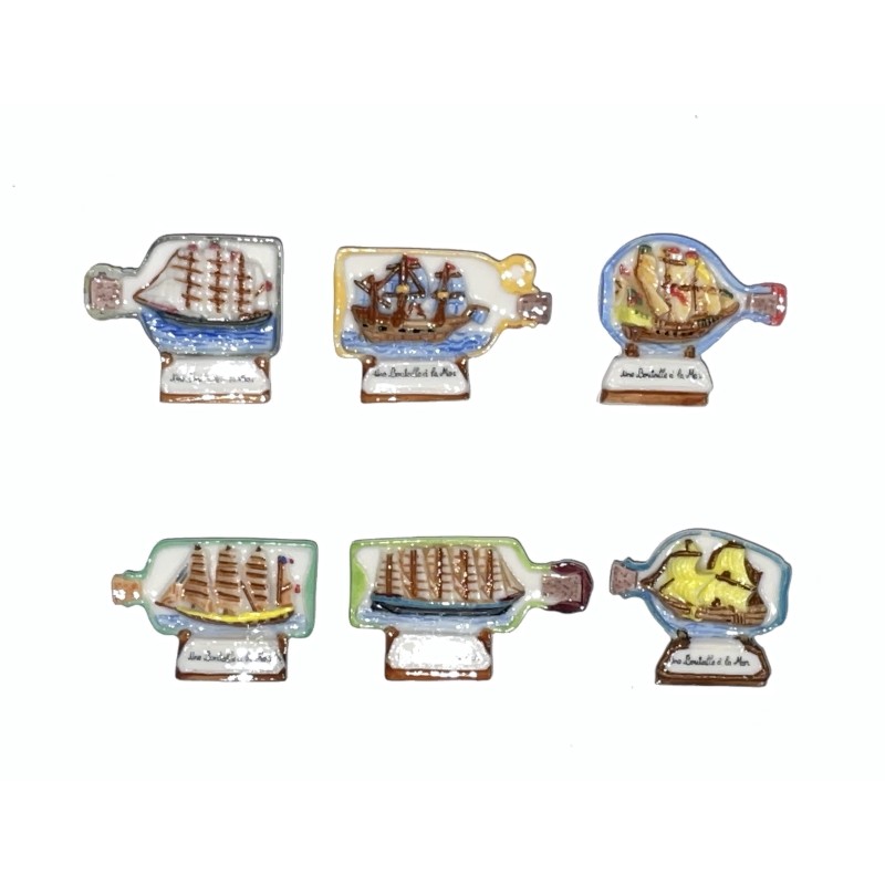 Série complète de 6 fèves Une bouteille à la mer Prototype 2003