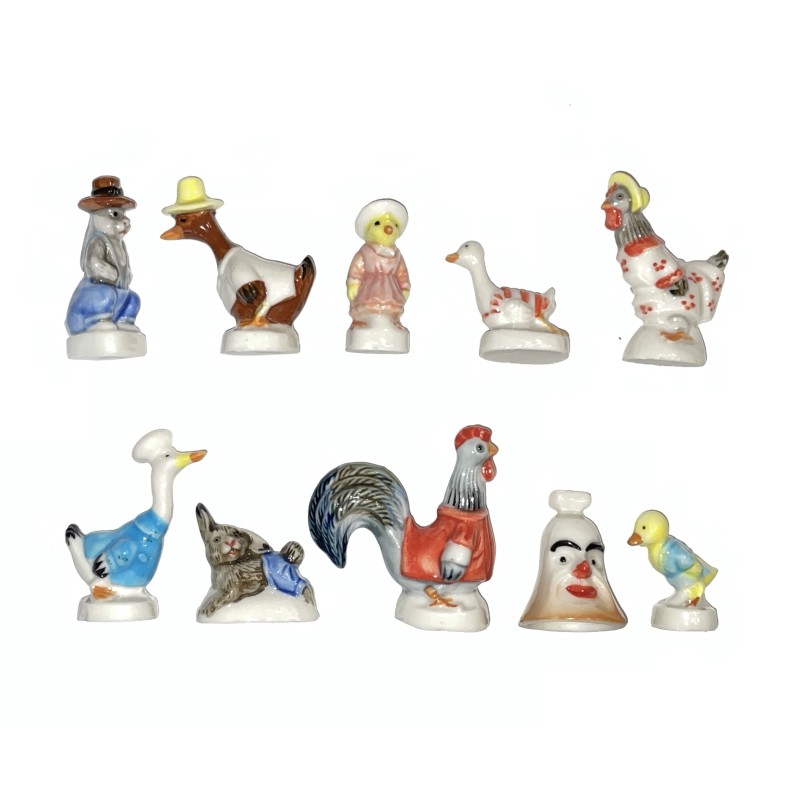 Série complète de 10 fèves en porcelaine.
