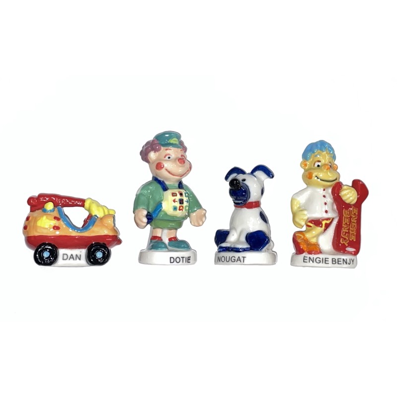 Série complète de 4 fèves médium de 7 cm en porcelaine.
