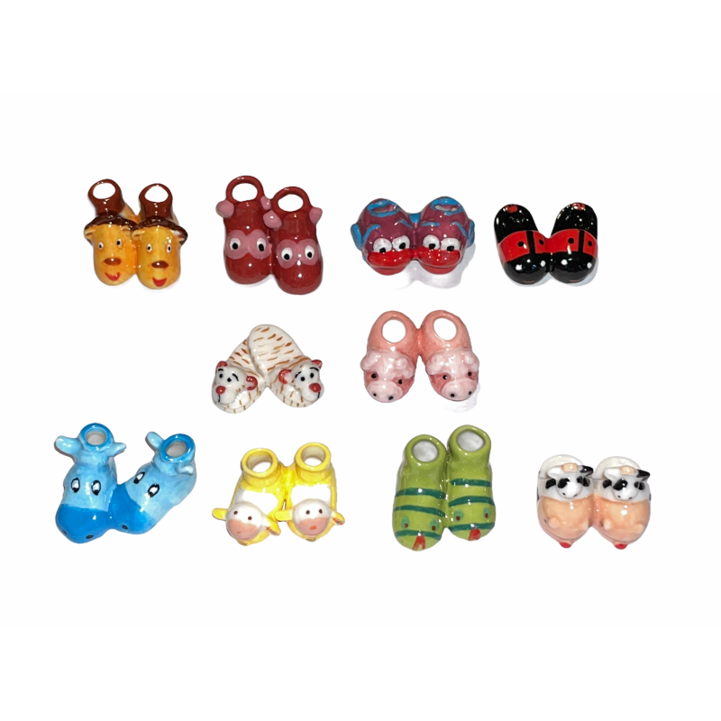 Série complète de 10 fèves Les chaussons rigolos 2010