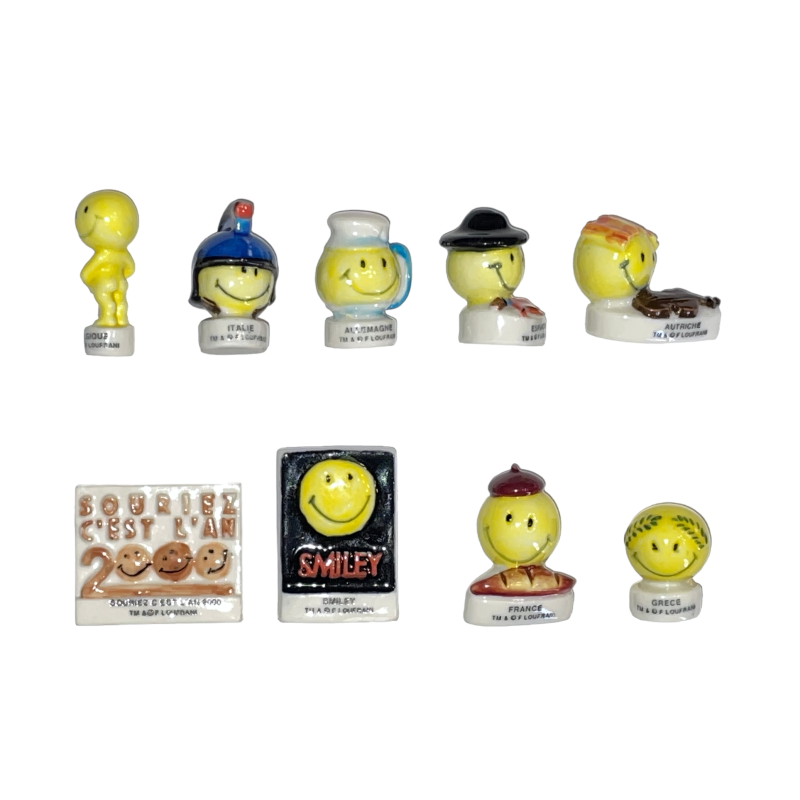 Série complète de 9 fèves Smiley 2000
