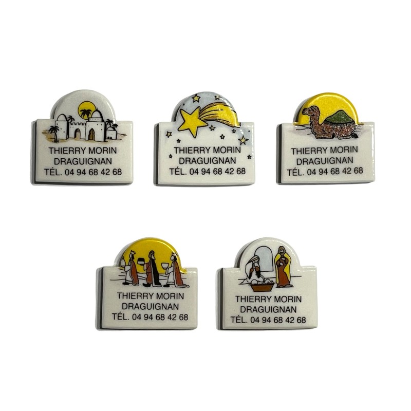 Série complète de 5 fèves Rois mages chromo Thierry Morin 1997